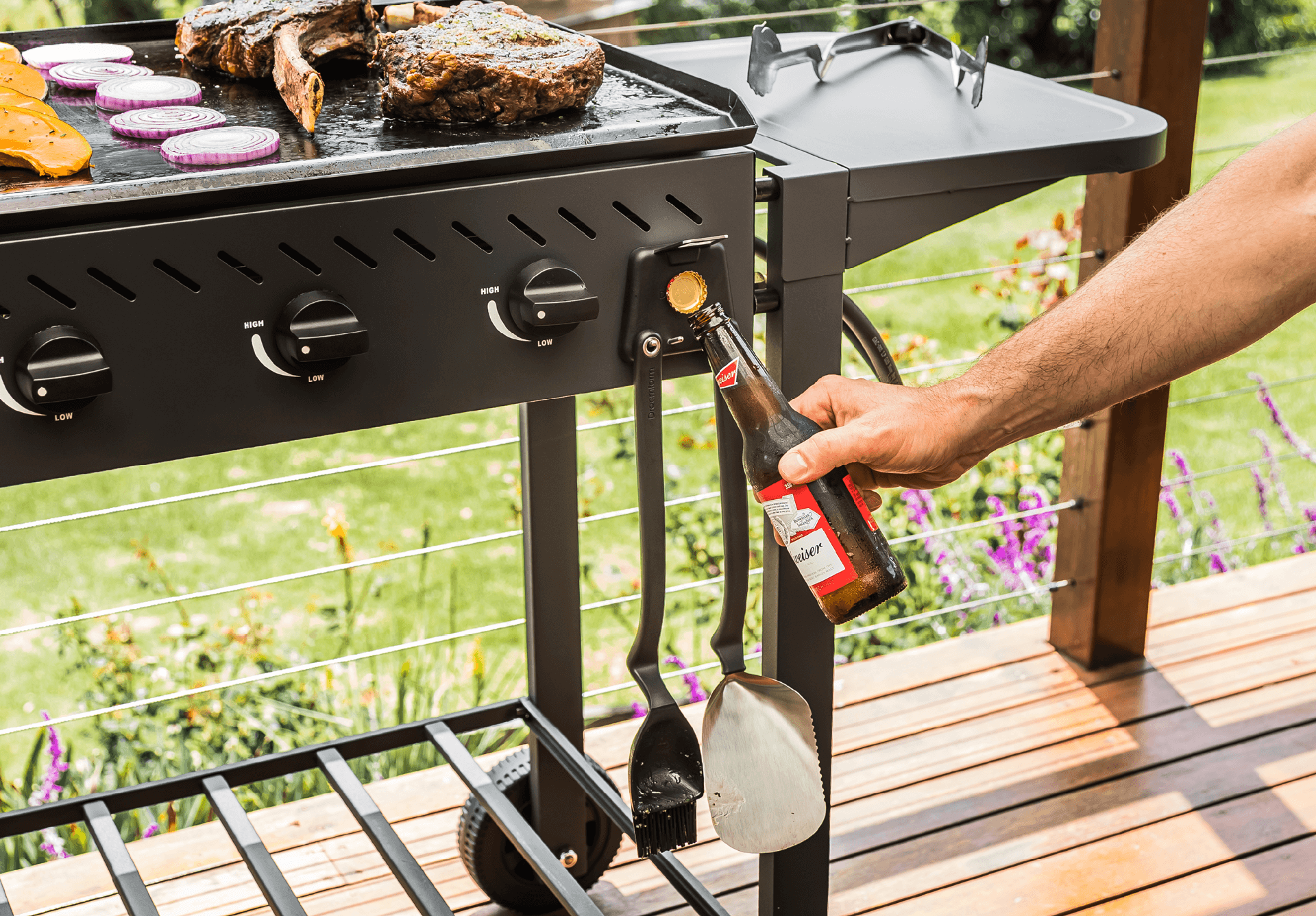 | description | Set of BBQ Grill Tools is a premium collection of tools with a magnetic holder that opens bottles and catches the caps. |
